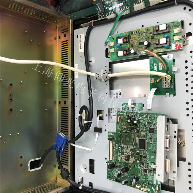 倍福工控机触摸屏黑屏故障维修:首先用万用表测了24V电源输入端与地之间阻值,2兆多欧姆,不短路,然后打开机器后壳,测电源保 险丝,完好。于是给机器上24V直流电,电源指示灯亮,初步判定电源电路正常。用手电简照屏,